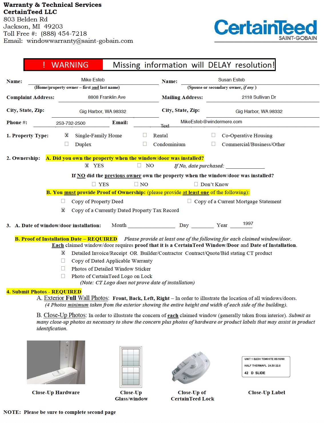 Warranty Request